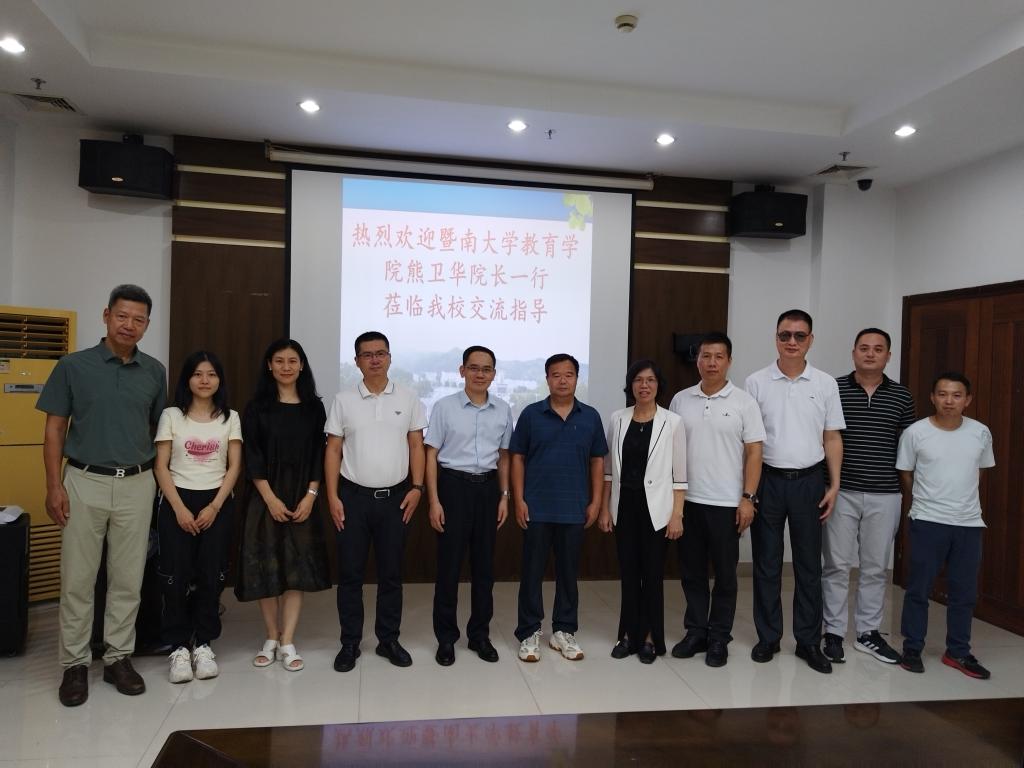 为加强院校之间合作,探索继续教育高质量办学发展方向,10月14日下午,暨南大学教育学院熊卫华院长一行到我校开展调研交流工作。我校党委副书记、院长罗恢远,党委委员、副院长刘瑞叶及继续教育部相关人员参加交流。